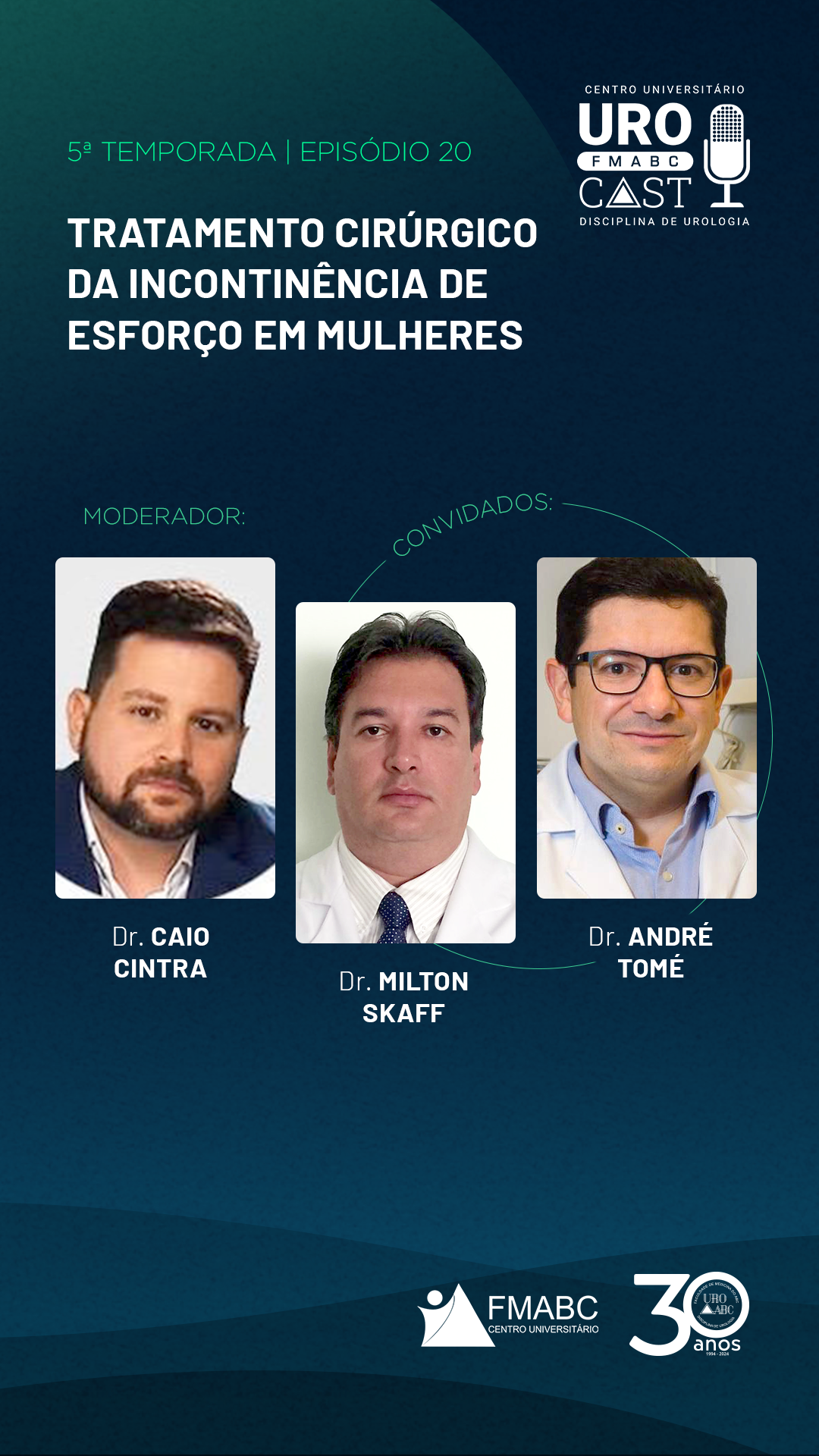 Neste episódio moderado pelo Dr. Caio Cintra, convidamos os especialistas Drs André Tomé e. Milton Skaff Jr. para falarem sobre o tema: “Tratamento cirúrgico da incontinência de esforço em mulheres”.