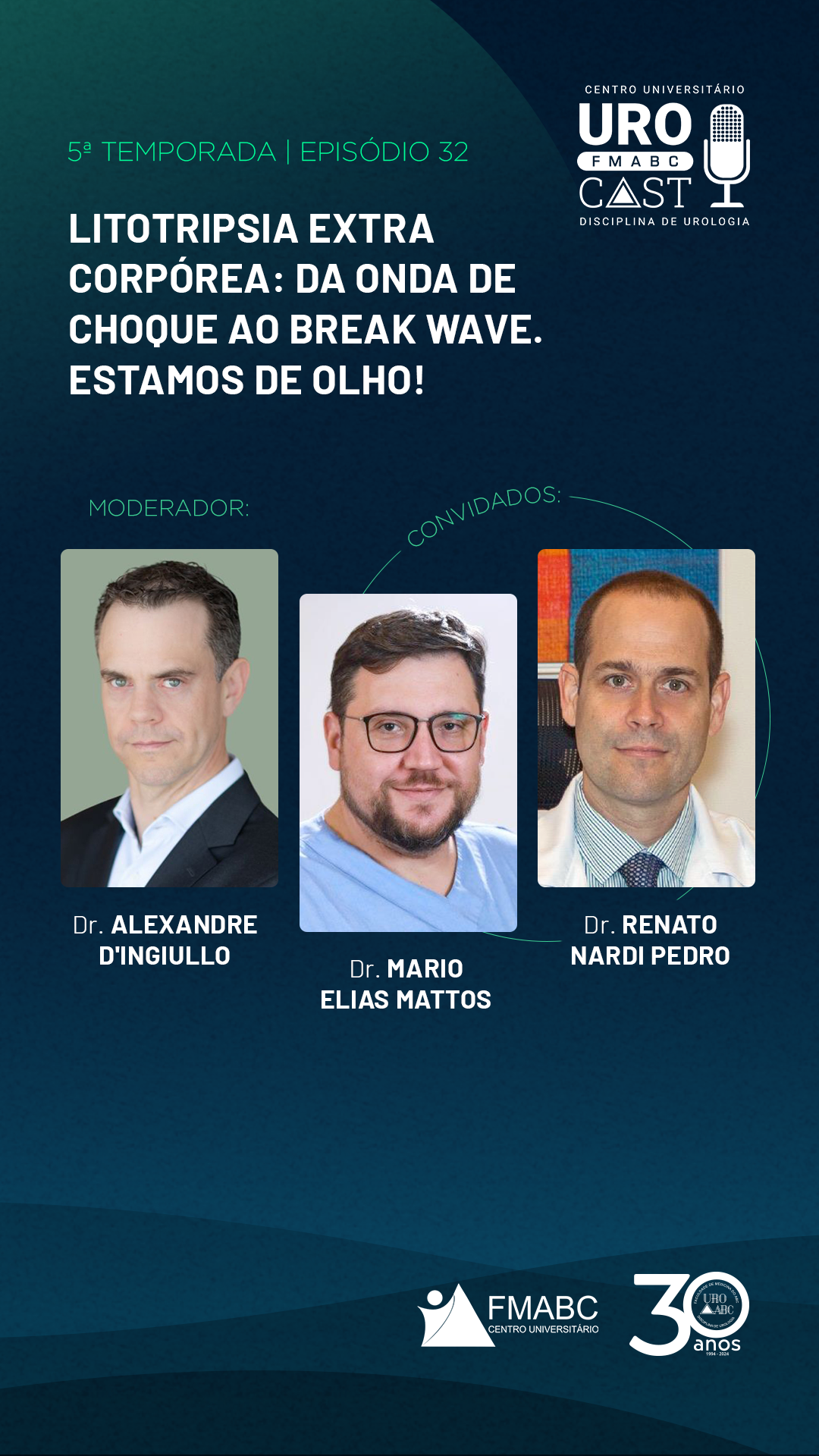 Neste episódio moderado pelo Dr. Alexandre D’Ingiullo, convidamos os especialistas Drs.. Mario Elias Mattos e Renato Nardi Pedro para falarem sobre o tema: “Litotripsia extra corpórea: da onda de choque ao break wave. Estamos de olho!”.
